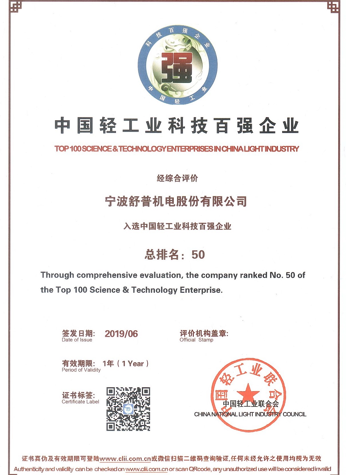 Breaking News | Supreme Stock Selected into China's Top 100 Light Industry Technology Enterprises and China’s Top 30 Light Industry Equipment Manufacturers!