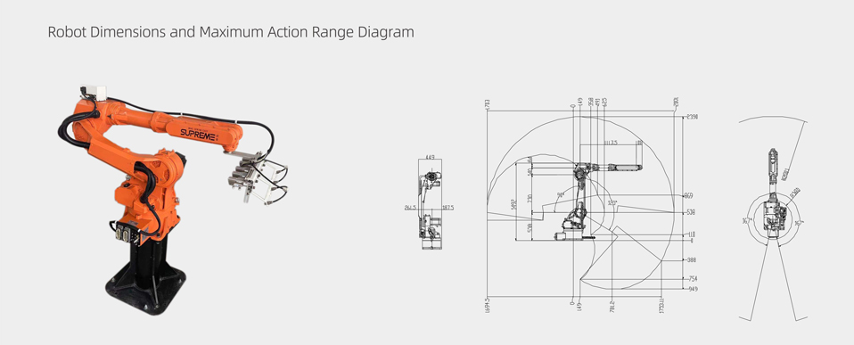 The payload is 6KG, the arm span is 2001mm, and the design is compact.
