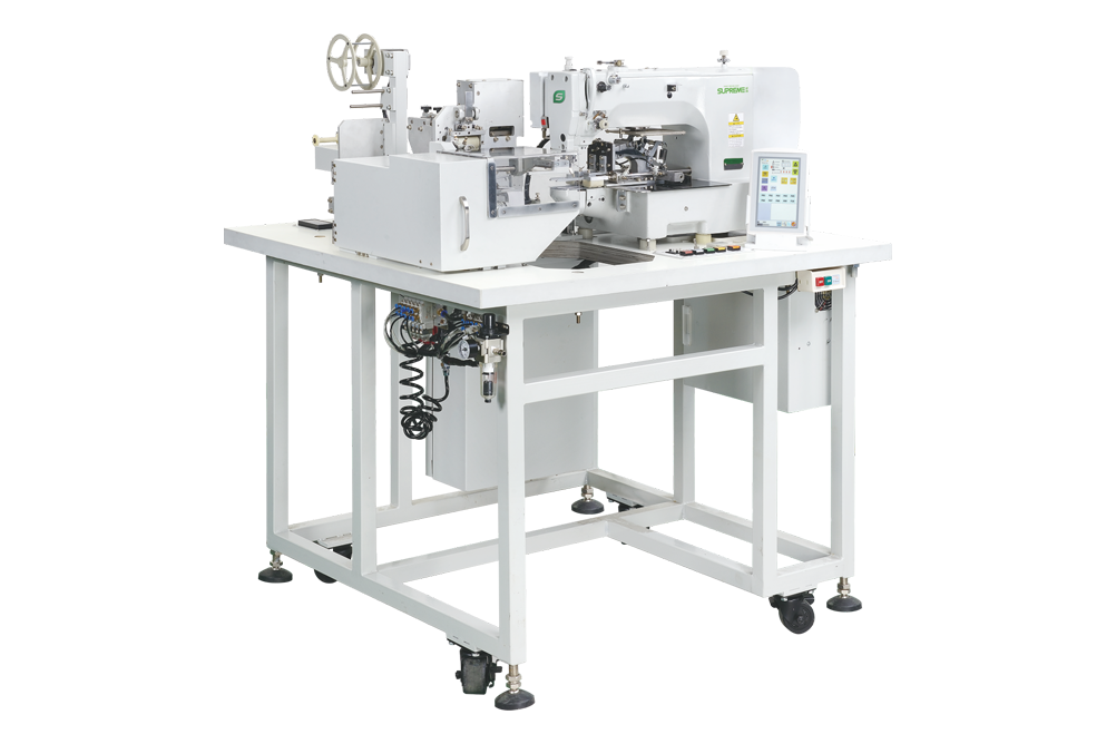 Introducing advanced Panasonic color mark recognition system for double colors elastic stitching, recognizing the position of the LOGO precisely, to ensure the LOGO in the center position against the jointing line, can stitch one big and one small length of elastic in each cycle, very efficiently save the wastage of elastic.It is a milestone to introduce the visual identification system in the sewing industry.