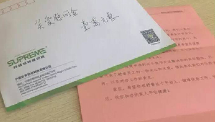 五月:充满着感恩、充满着爱!爱是一件温暖的事,可以化作无声的语言和默默的付出,但也需要在适当的时候有恰如其分的表达!这是2017年公司对员工送出的又一份温暖,这样的关爱慰问一直在持续,舒普一点一滴地践行着自己的社会责任。