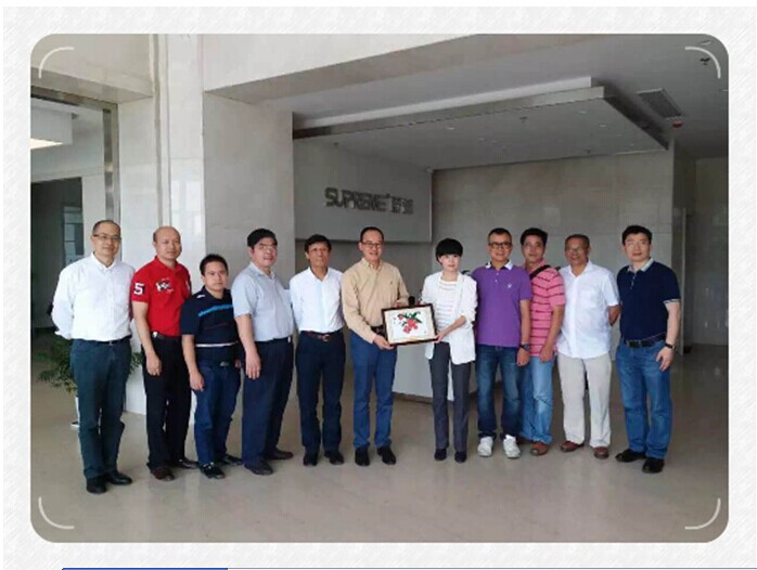 2016年5月4日下午,广东缝制设备商会梁佛祥主席携相关领导一行莅临我司考察参观,专题了解企业目前的整体运营情况,我司运营部相关领导热情接待,陪同调研。在公司的产品展示中心,由我们的专业技术人员,详细介绍了每款机器的性能及应用范围,获得了商会领导对我们产品的一致认可和赞许;