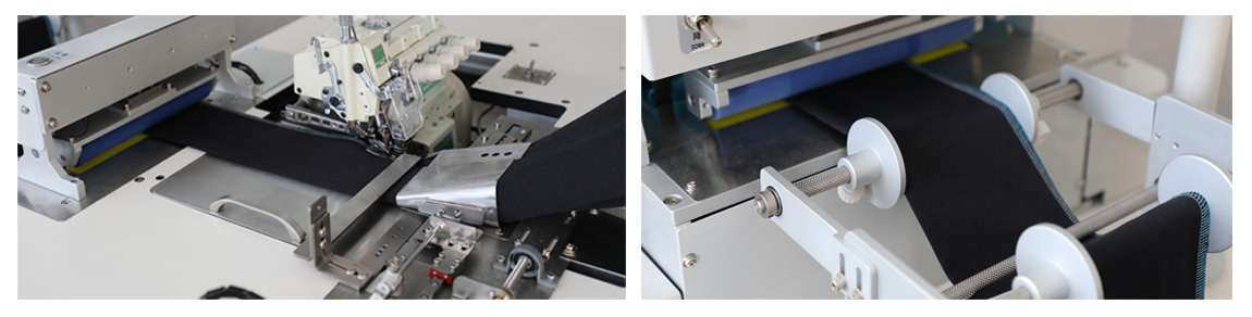 - 将多个服饰工艺整合于一体,缝制、切料、穿料、翻料和收料一次性完成,全程自动化操作