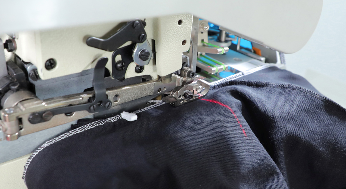 衣料放置指定位置,设备自动翻折下摆并车缝