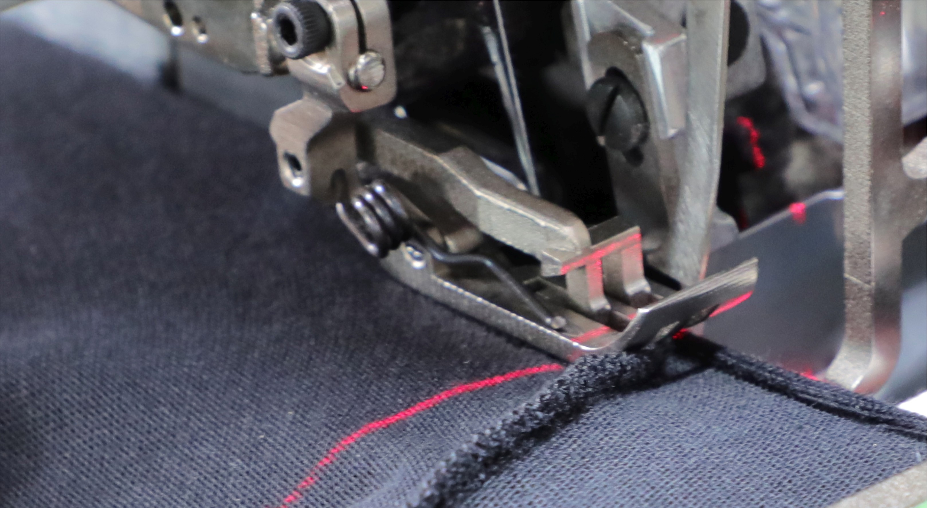 十字光标机构:方便将螺纹拼接处与衣服骨缝处对齐,缝制线迹平整,缝线至螺纹边距一致