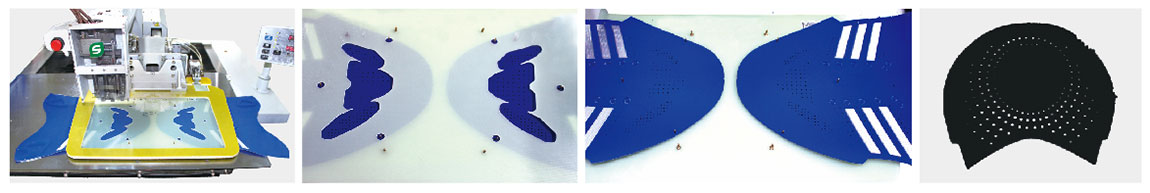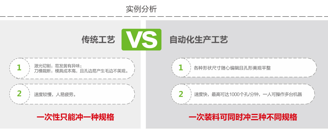 - 主要应用于鞋类、箱包、各类皮具、汽车座椅等产品的冲孔加工,各种形状尺寸,随心编辑,可一人同时操作多台机器,一次装料可完成三种规格的冲孔需要。